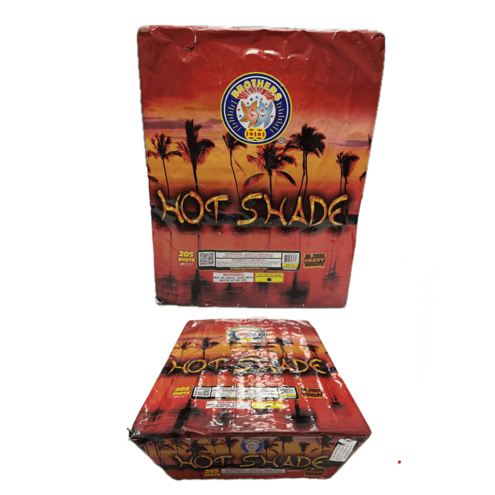 Prepárate para encender la noche con Hot Shade de Brother Fireworks , un pastel explosivo de 205 disparos rápidos, diseñado para una emoción sin fin. Cada disparo se lanza en rápida sucesión, llenando el cielo de brillantes rojos, verdes, dorados relucientes y destellos estroboscópicos que mantienen la acción hasta el último estallido.