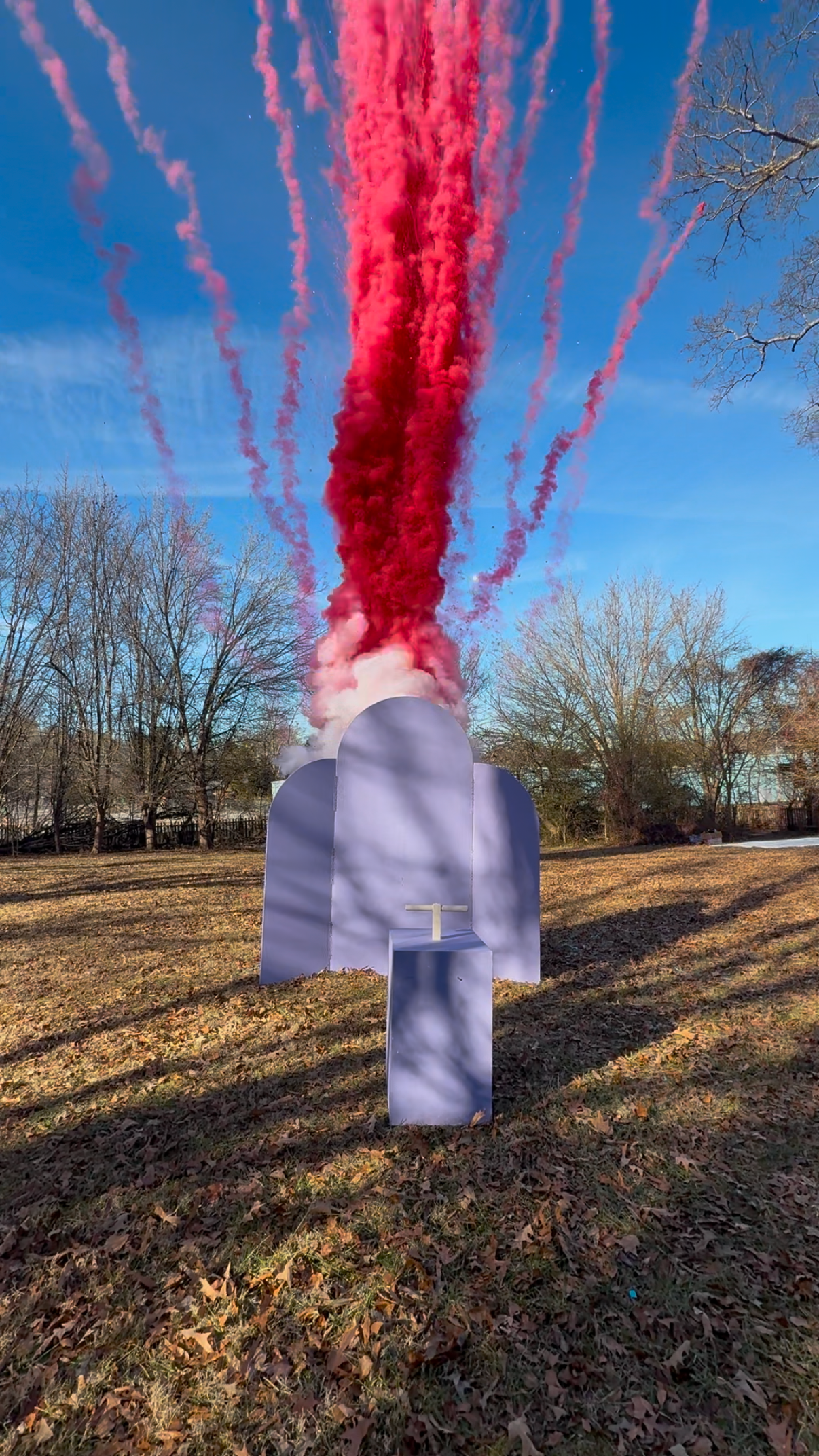 Launch vibrant bursts of pink or blue smoke that soar over 75 feet into the air, creating a stunning centerpiece for your reveal. -